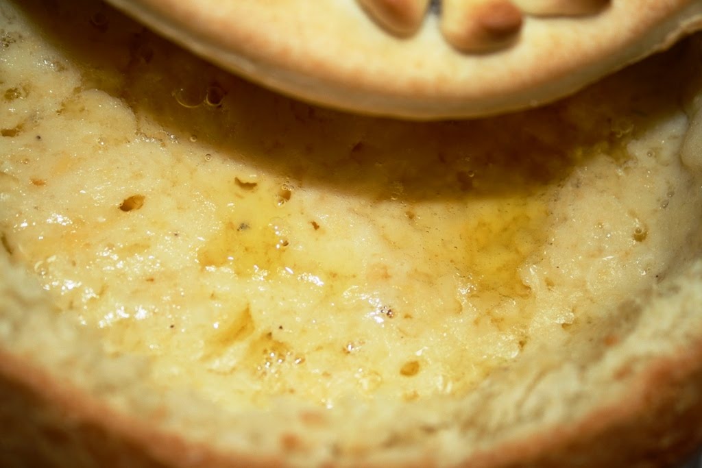 Servimos inmediatamente, usando la miga de pan que hemos vaciado, cortándola en cuadraditos para untar en la
